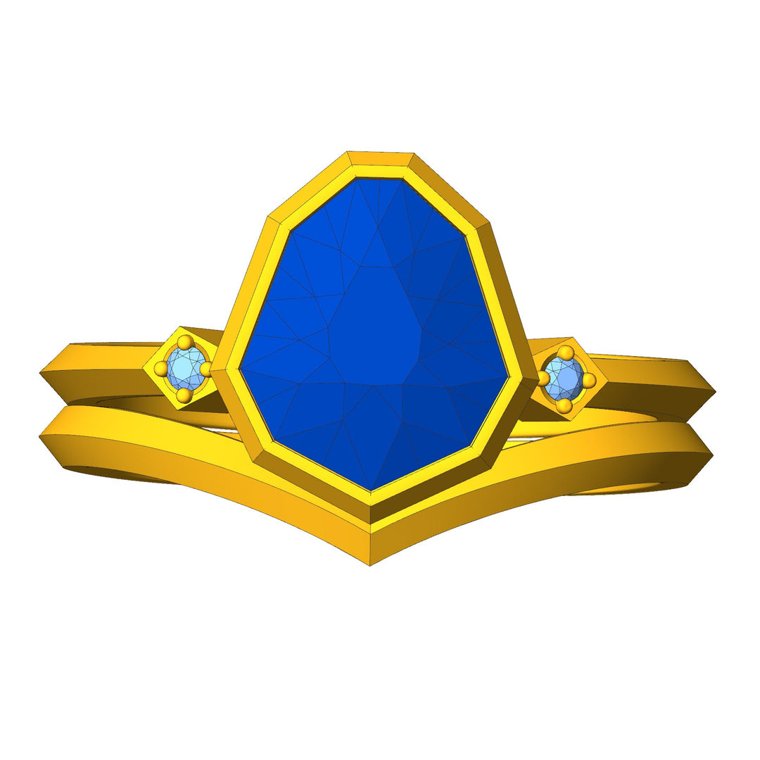 Custom Listing - Blue Sapphire Shield Leaf Bezel Ring