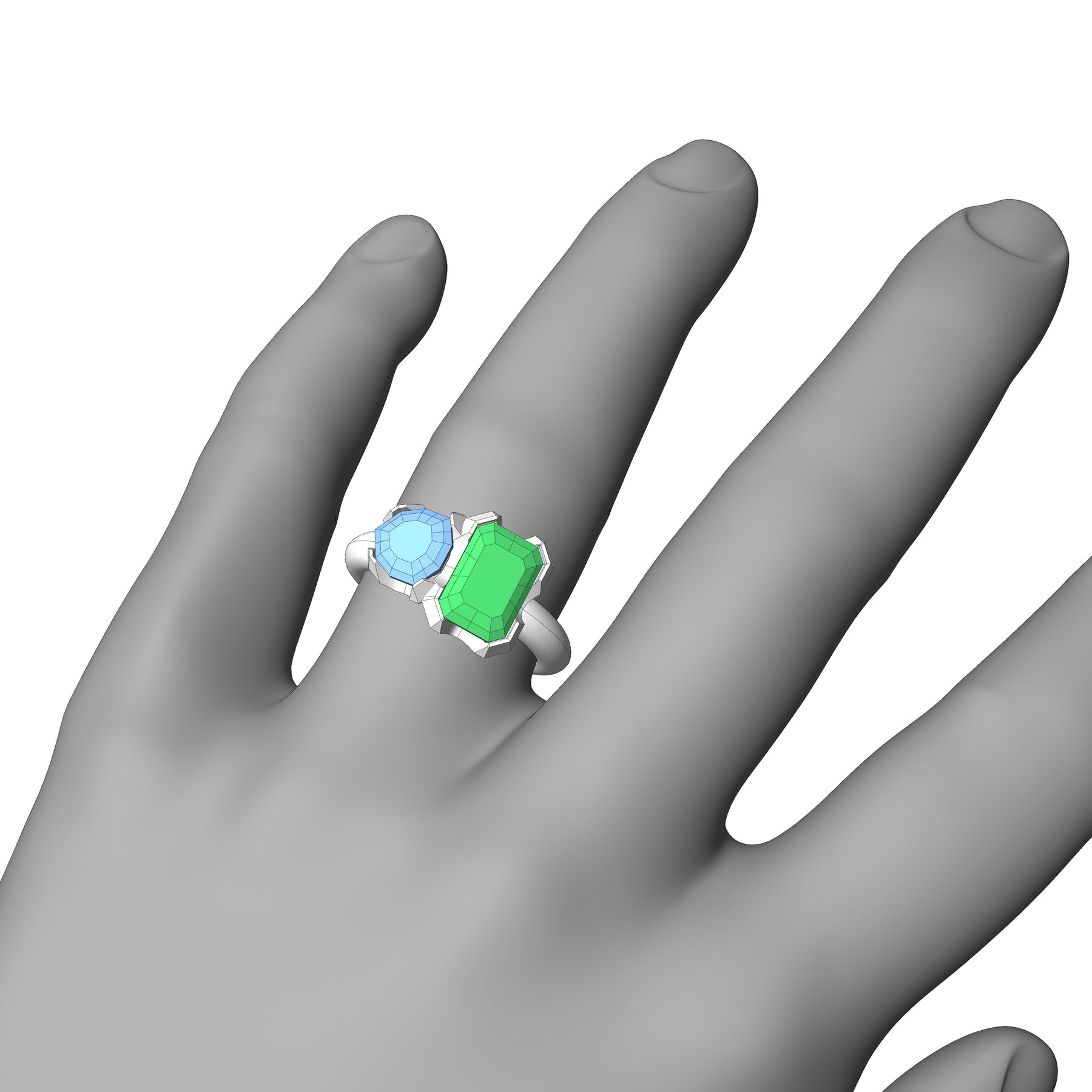 Toi et Moi Ring for a 1.9 carat Blue Zircon and a 2.4 carat green tourmaline octagonBlue Zircon details hereGreen Tourmaline details hereDesign as depicted