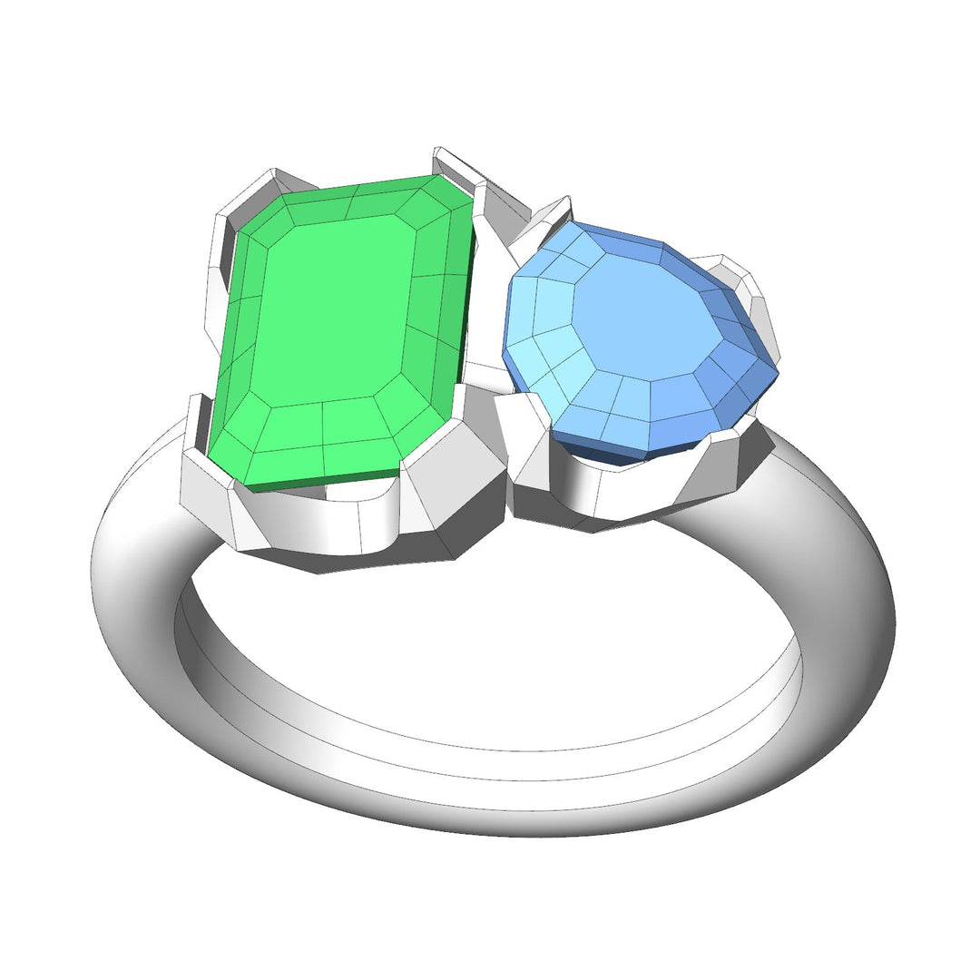 Custom Listing - Toi et Moi Green Tourmaline & Blue Zircon Ring