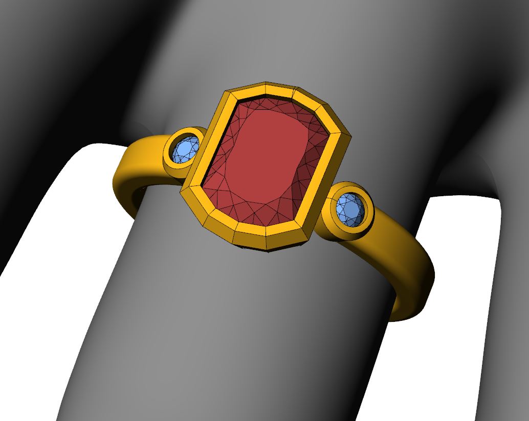 You can pick any setting from my "Customizable Settings" Page. If you pick one of these I will follow up with a render of your setting with the specific gem that you chose for approval. My Settings page also serves as my portfolio of past jewelry projects as the depicted ring was usually a custom order.