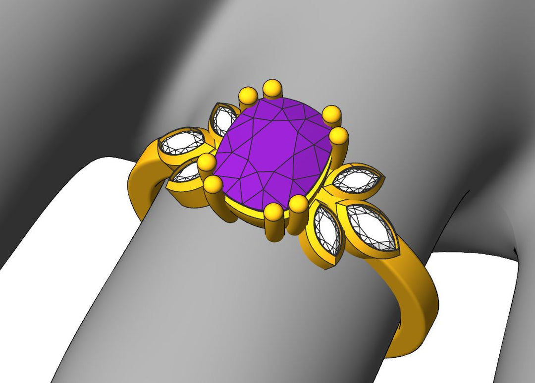 Custom cut purple sapphire and Candian diamond platinum ring in the making